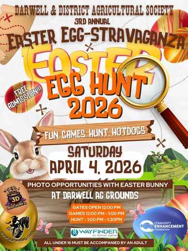 Hop on over to the Darwell Ag Grounds for our 3rd annual Easter Egg-Stravaganza! Bring the kids for an afternoon filled with games, hotdogs, photo opportunities with the Easter Bunny, and a BIG Easter Egg Hunt. It’s a fun, family-friendly way to celebrate Easter together in our community.